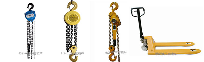 這些手動起重工具中較受歡迎的的型號有:HSZ型手拉葫蘆、VE型手拉葫蘆、HS-VT型手拉葫蘆、HSZ-A型手拉葫蘆、HS-C型手拉葫蘆、HSH型手扳葫蘆、SM鋼絲繩手扳葫蘆、手動液壓搬運車、堆高車、螺旋千斤頂、臥式千斤頂。這些手動起重工具有各自的使用范圍,它們受歡迎的程度,與客戶的需求有直接的關系。手拉葫蘆在工業、農業、建筑業使用較多,而手扳葫蘆在交通運輸、電力行業應用較多,手動液壓搬運車在商場、貨倉使用較多,千斤頂在建筑行業和汽車維修行業使用廣泛。