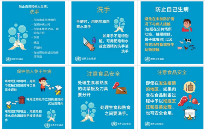 1.避免接觸禽畜、野生動物及其排泄物和分泌物,避免購買活禽和野生動物。