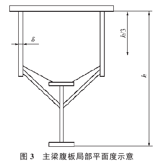 點定焊工字鋼與隔板連接處,之后用水準儀檢查主梁上拱度,應基本符合拋物線狀,并且由中心向兩端的拱度應圓滑過渡,如上拱度不符合要求,應用火焰矯正法加以調(diào)整。再將工字鋼下翼緣墊實,焊接工字鋼與隔板連接處的焊縫。