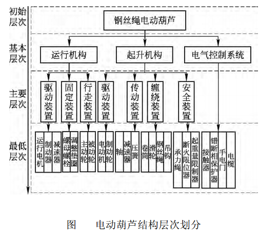 從上圖可以看出鋼絲繩電動葫蘆主要分為運行機構、起升機構和電氣控制系統(tǒng)三大部分,上圖中對鋼絲繩電動葫蘆每一個結(jié)構層次進行了細分。鋼絲繩電動葫蘆的配件都在上面有所展示。了解鋼絲繩電動葫蘆的結(jié)構層次可以更好的操作和維修鋼絲繩電動葫蘆。