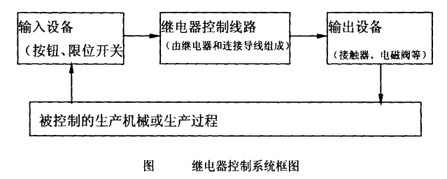 下圖中是一個繼電器控制系統。由繼電器、接觸器用導線連接起來以實現控制程序的,因此屬于接線程序控制系統,其輸入對輸出的控制是通過接線程序來實現的,輸入設備(按鈕、行程開關、限位開關、傳感器等)用以向系統送入控制信號。輸出設備(接觸器、電磁閥等執行元件)用以控制生產機械和生產過程中的各種被控對象(電動機、電爐、電磁閥們等)。