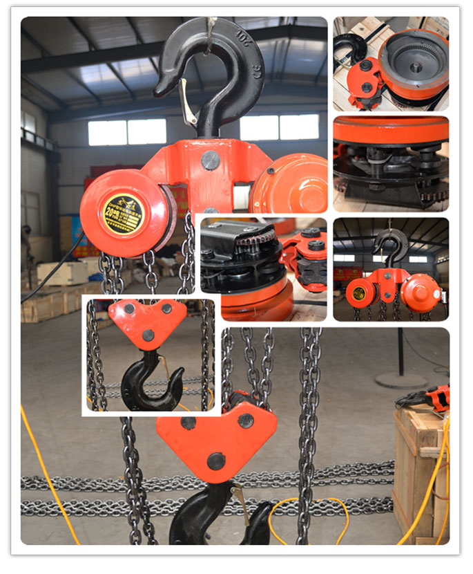 4、起重鏈條采用20Mn2(錳鋼)材質(zhì),G80級(jí)大包頭高頻淬火,鏈條直徑10mm。