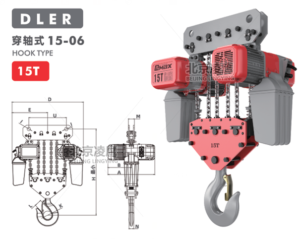 產品名稱:15噸DLER環鏈電動葫蘆穿軸式